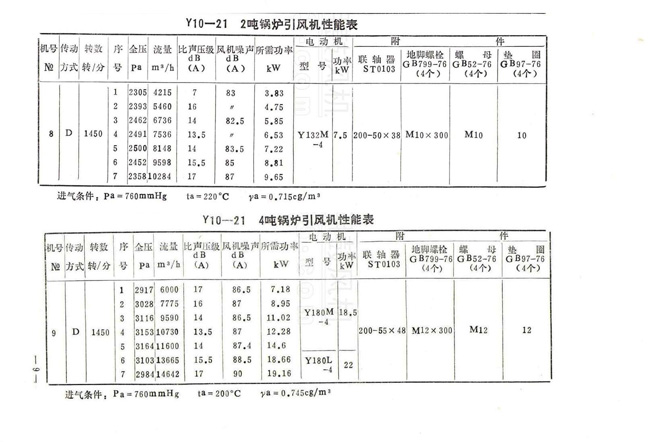 Y10-21型鍋爐離心風(fēng)機參數(shù)表